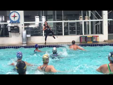 Hidroginastica Aula - Aula de hidroginástica com a prof Kênia Paniago no curso Quick Start nível 1 da Double Splash. Aula utilizando a borda da piscina.